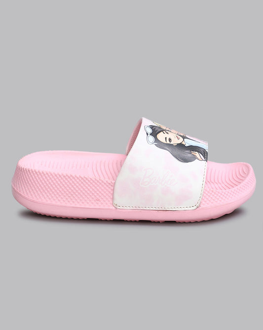 Barbie Printed Pink Sliders for Girls