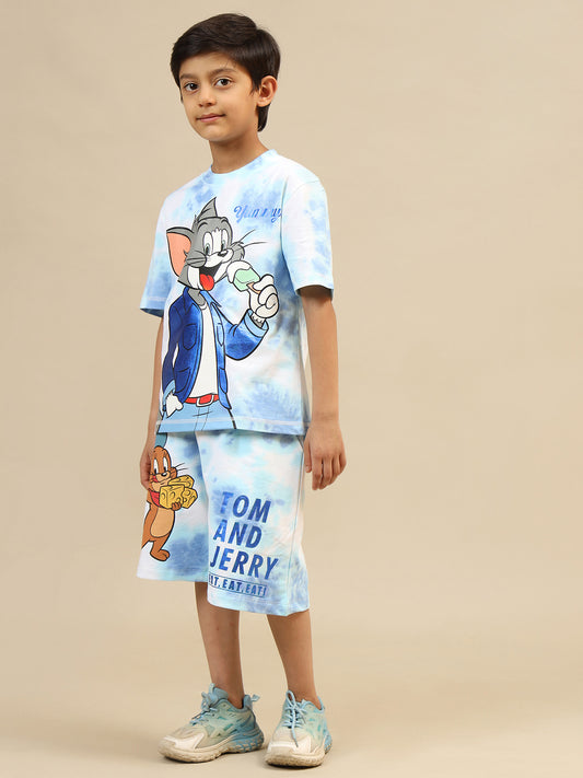 Tom & Jerry Printed T-shirt & Shorts Co-ords Set For Boys