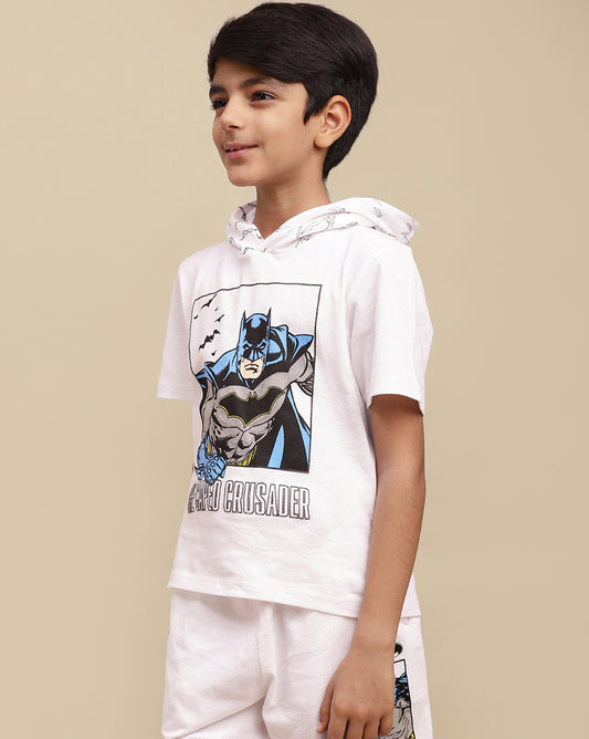 Batman Printed Regular Fit Hooded Tshirt For Boys