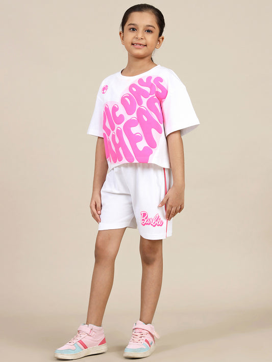 Barbie Printed T-Shirt & Shorts Co-Ords Set For Girls