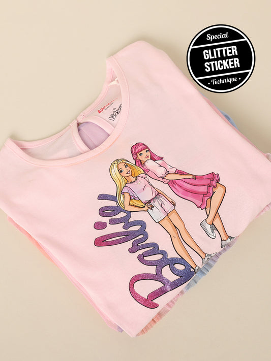 -15% OFF New ArrivalBarbie Printed Regular Fit Dress For Girls