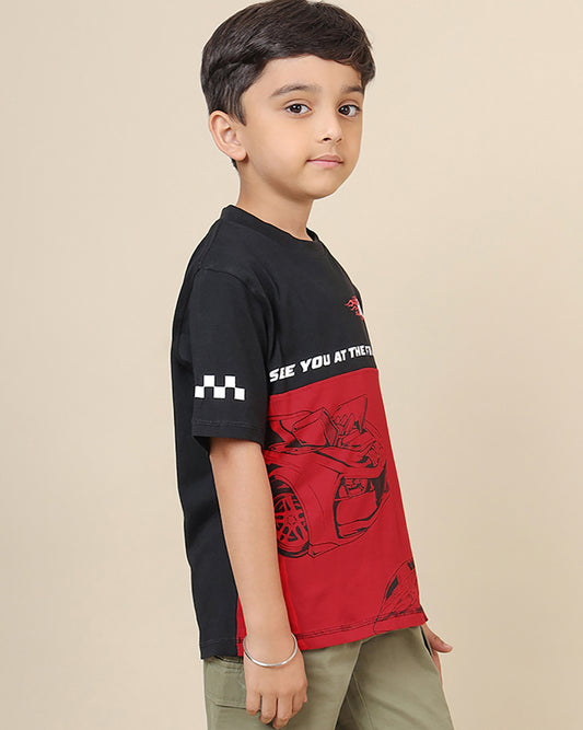 -15% OFF New ArrivalHot Wheels Printed Regular Fit Tshirt For Boys