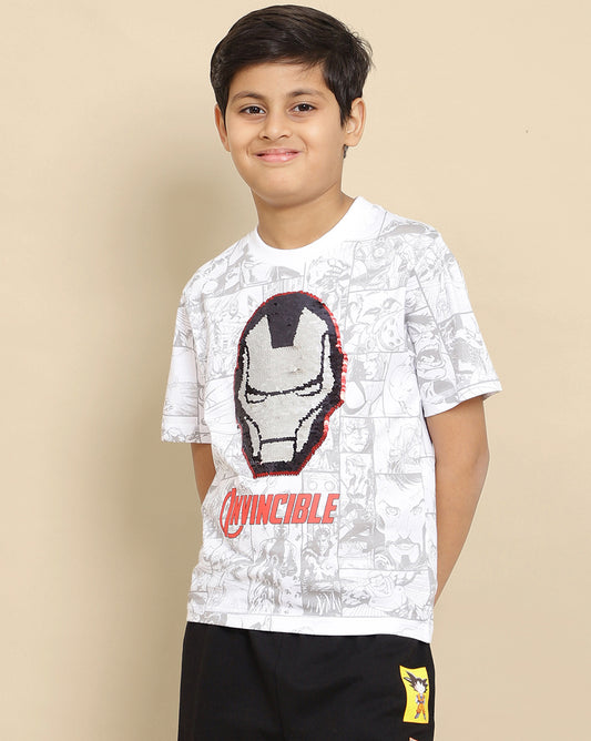 Iron Man Printed Reversible Sequin Regular Fit Tshirt For Boys