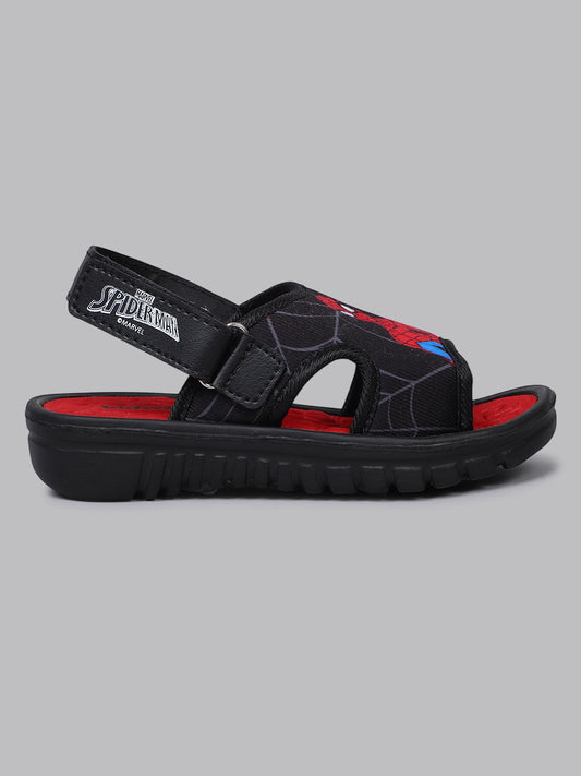 Kids Boys Spiderman Printed Black Sandals