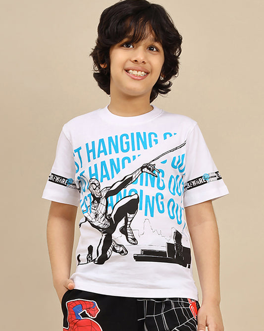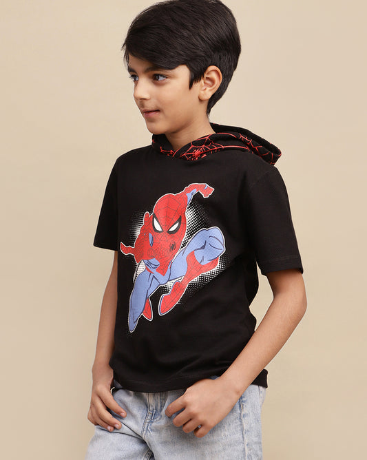 Spiderman Printed Regular Fit Hooded Tshirt For Boys