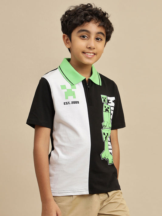 Minecraft Printed Regular Fit Polo T-Shirt For Boys