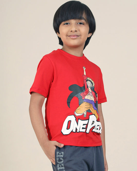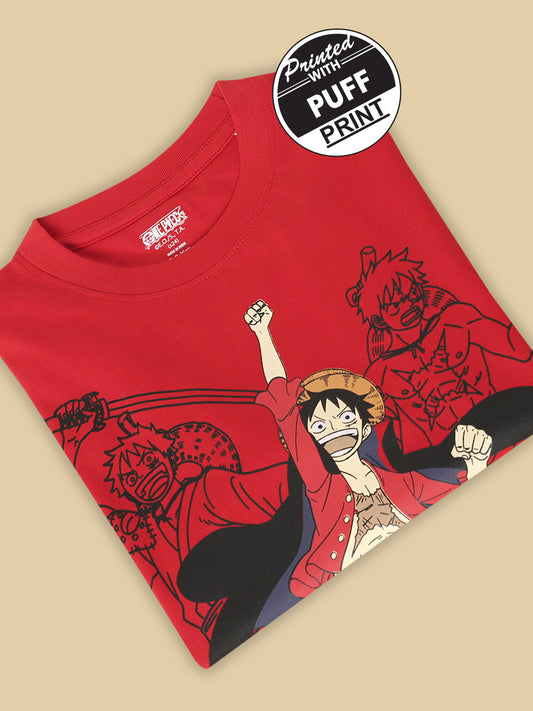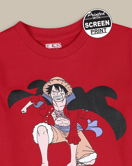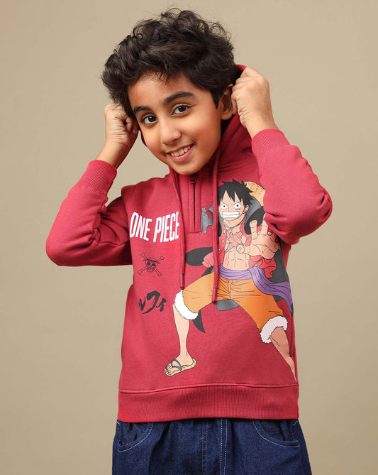 -15% OFF New ArrivalOne Piece: Luffy Anime Printed Red Regular Fit Hoodie For Boys