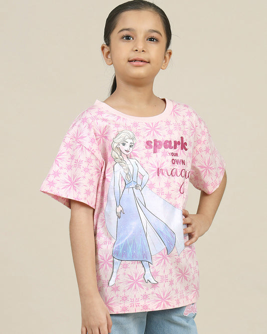 Frozen Printed Relaxed Fit Tshirt For Girls