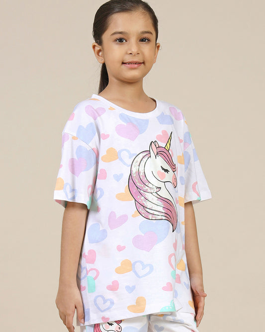 BUY 1 GET 1Unicorn Printed Relaxed Fit Tshirt For Girls