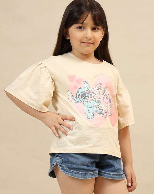 -10% OFF New ArrivalLilo & Stitch Printed Relaxed Fit Tshirt For Girls
