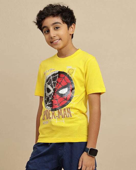 -30% OFF New ArrivalSpiderman Printed Regular Fit Reversible Sequin Tshirt For Boys