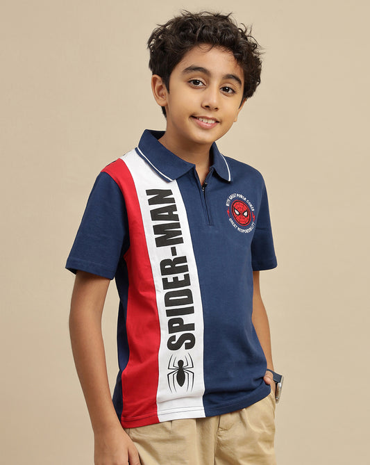 Spiderman Printed Regular Fit Polo-T-Shirt For Boys