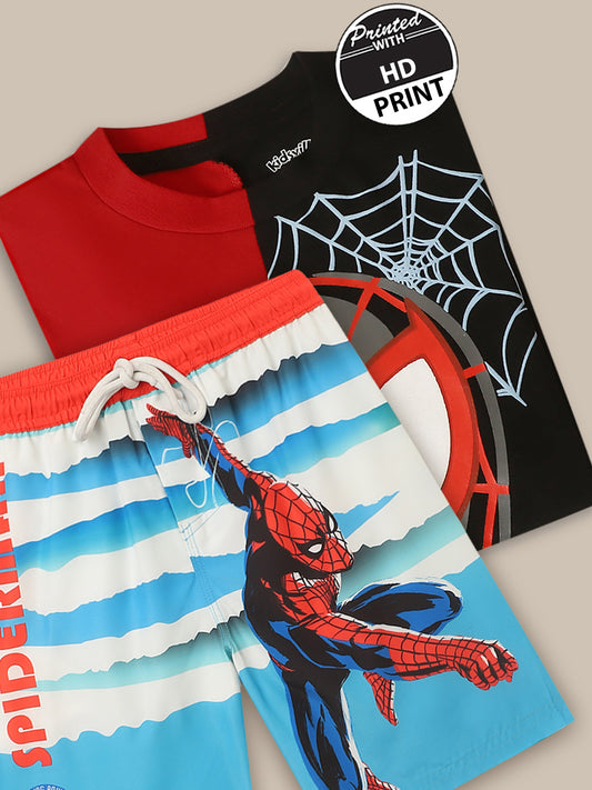 Spiderman Printed T-Shirt & Borad Shorts Co-Ords Set For Boys