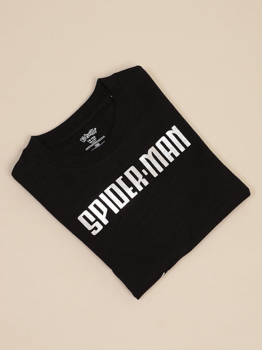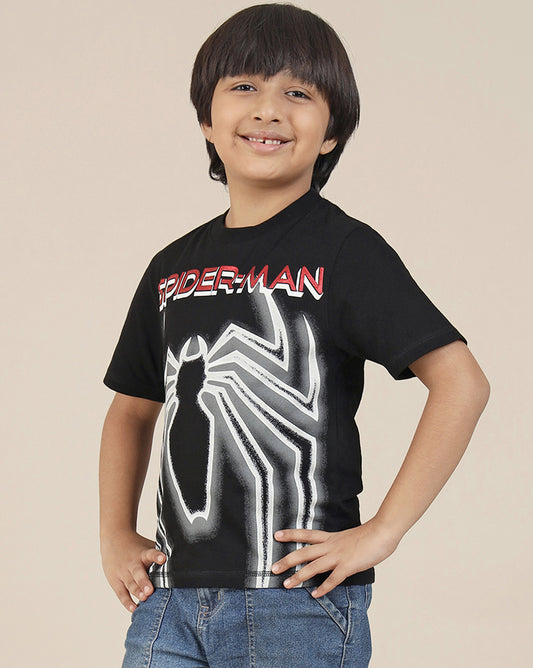 Spiderman Regular Fit Crew Neck Black Tshirt For Kids Boys
