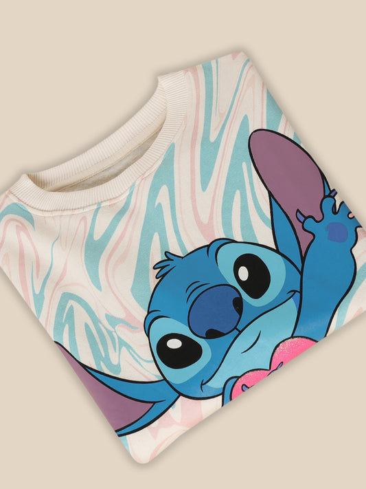 Stitch Printed Multi Color Regular Fit Sweatshirt For Girls