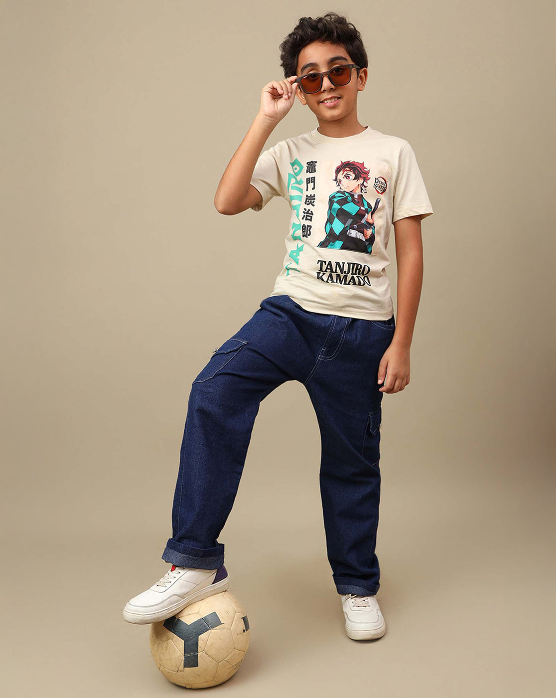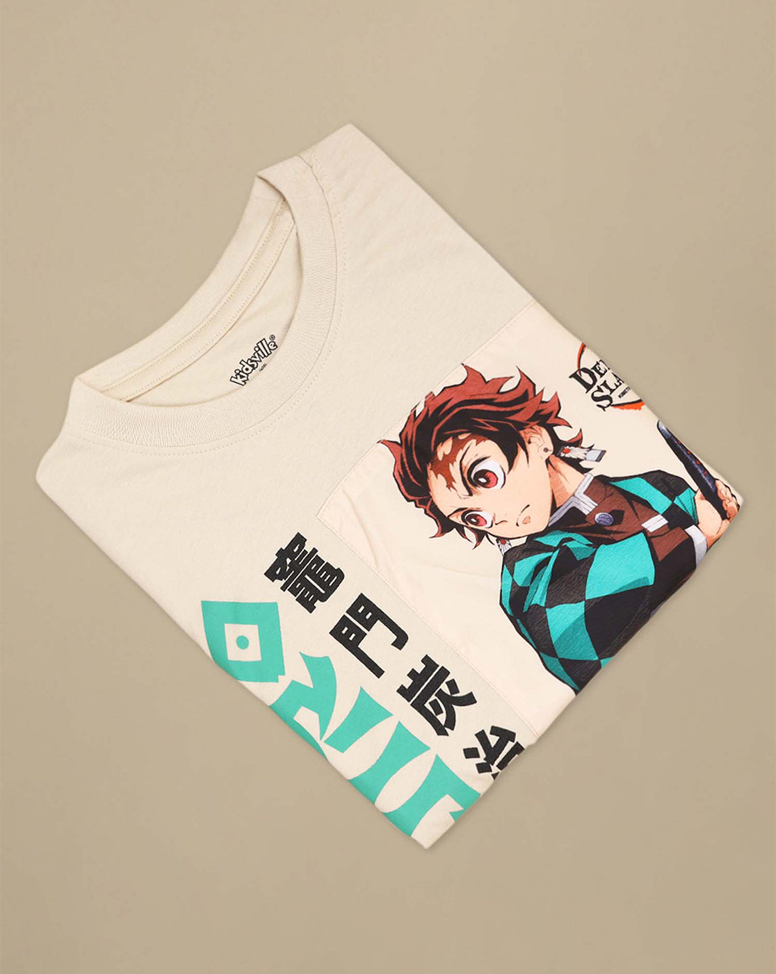 Demon Slayer: Tanjiro Anime Printed Fog Regular Fit Pure Cotton Tshirt For Boys