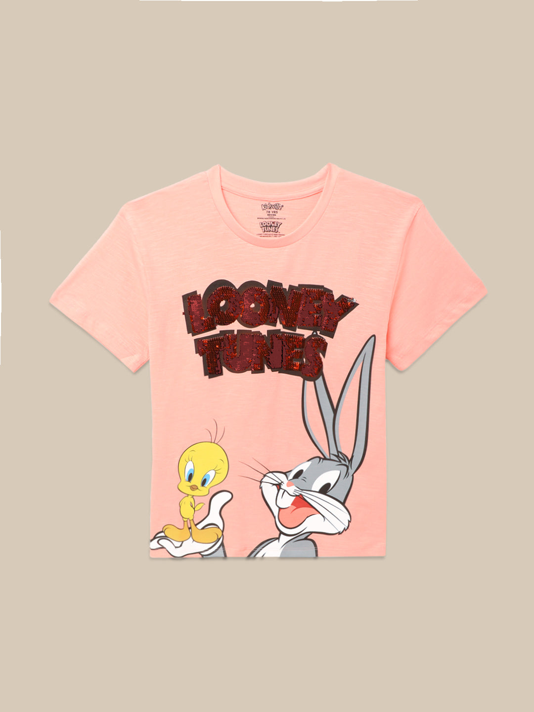 Hey parents, are you tired of your little girl wearing the same boring t-shirts? Well, we've got the perfect solution for you! Introducing the Kidsville Looney Tunes Printed Orange Tshirt For Girls. This t-shirt is not only comfortable, but it also features a printed LOONEY TUNES character on the front. And let me tell you, the material is top-notch. Made with high quality COTTON, this t-shirt will last through all your kid's adventures. Plus, it's officially licensed, so you know it's the real deal. Your LOONEY TUNES fan will love this stylish and trendy addition to their wardrobe. Don't wait, get yours now at Kidsville!