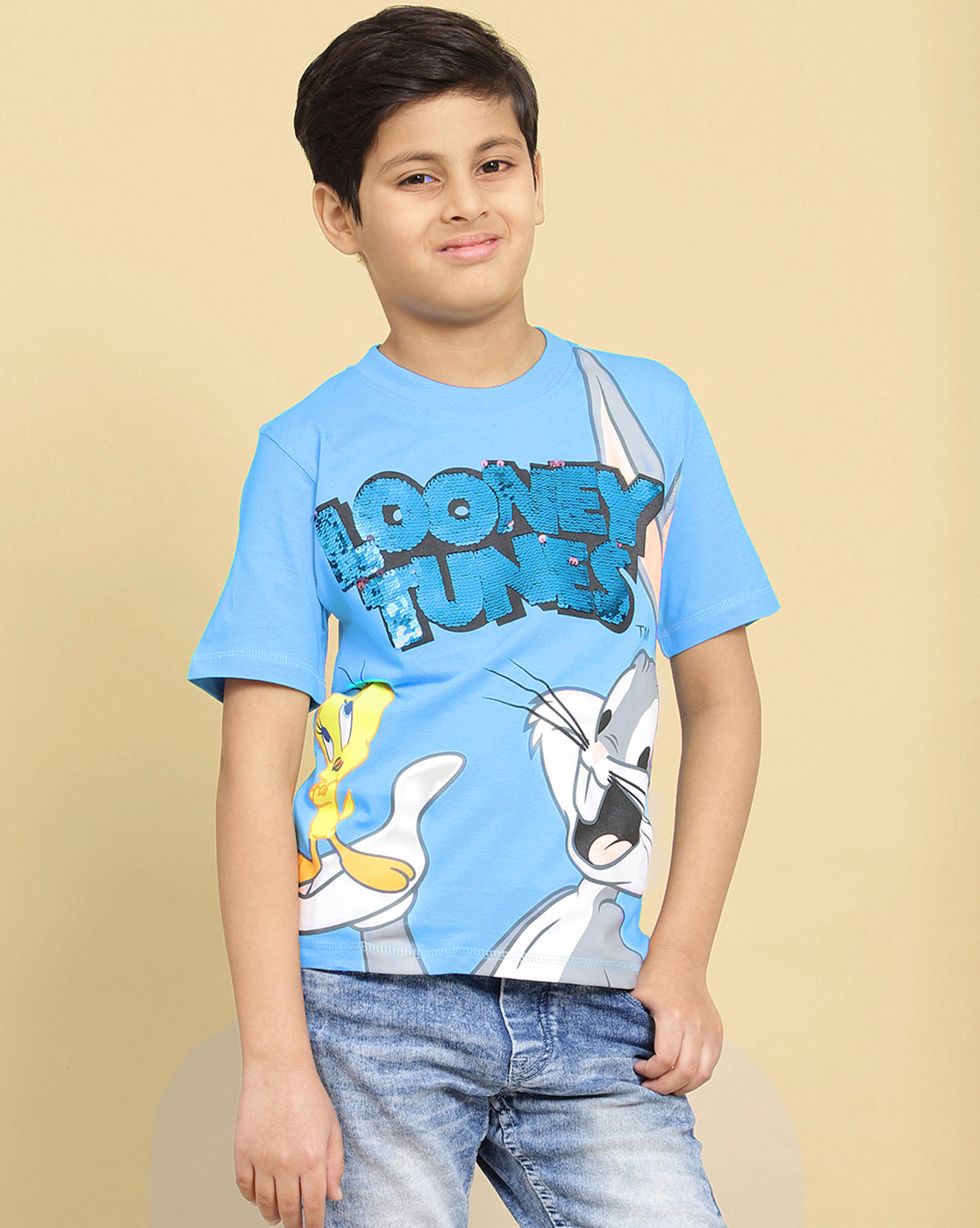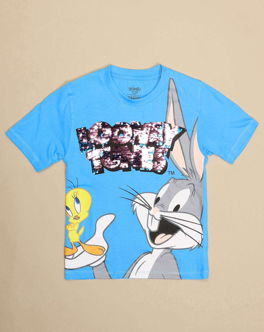 Looney Tunes Printed Reversible Sequin Regular Fit Tshirt For Boys