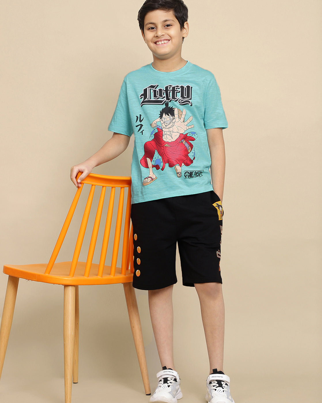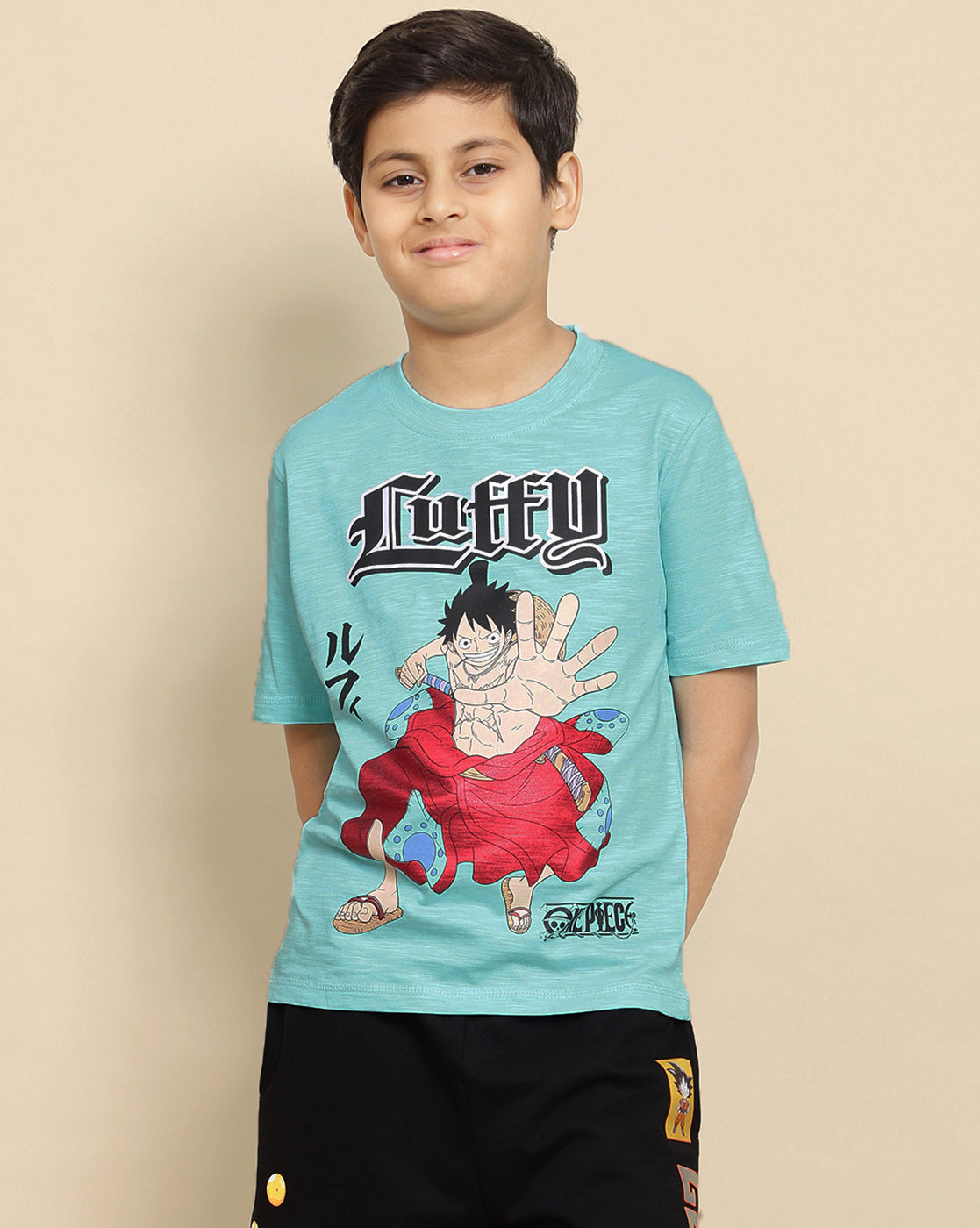Introducing the One Piece Printed Regular Fit Tshirt For Boys from Kidsville! This tshirt is perfect for ONE PIECE fans who want to stay comfortable and stylish all summer long. Made with high quality Cotton material, this officially licensed product features a printed character on the front that is professionally printed to ensure long-lasting color. It's the perfect gift for any ONE PIECE fan and will give you a trendy look and comfortable feel. Don't miss out on this must-have tshirt from Kidsville!